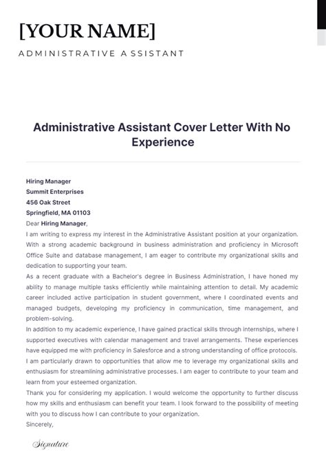 15 Cover Letter For Administrative Assistant With No Experience Cover from coverletter.sampoolman.com